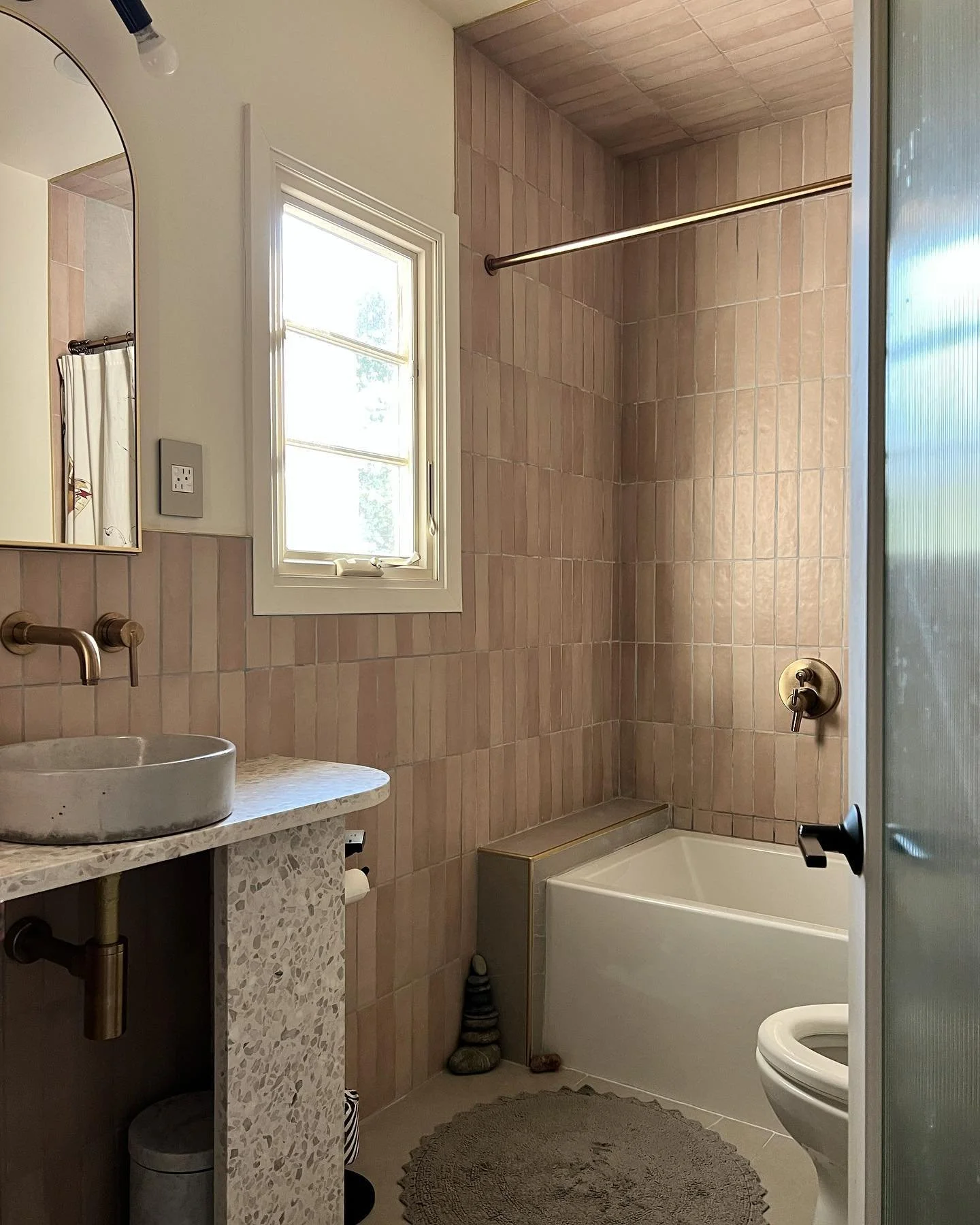 We always have clients asking about renovation and having a hard time knowing where to start. always the first two rooms we recommend to be updated when people are questioning? The kitchen and bathroom, every time. In a recent project, the kitchen and bathroom were the only updated rooms in this outdated home and yet we still chose it. Just a testament to a good bathroom and kitchen, Also that sunrise light 💫